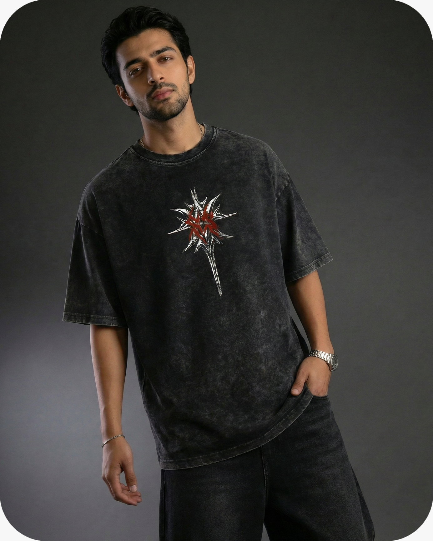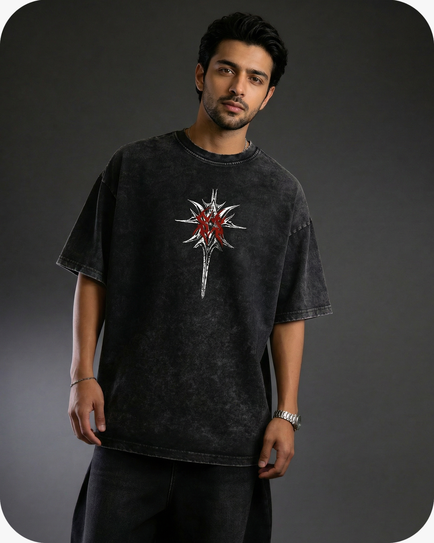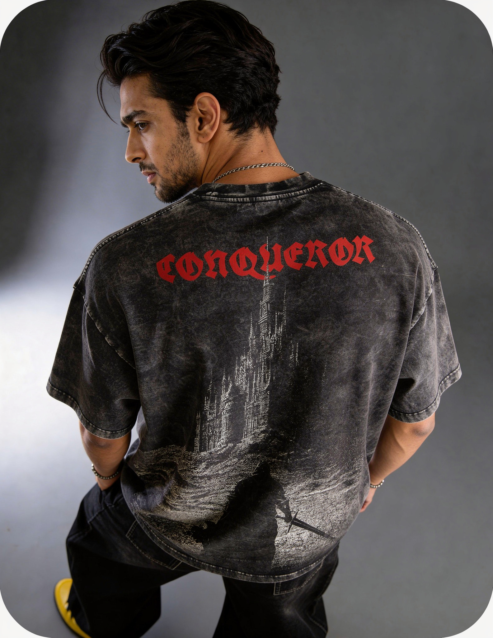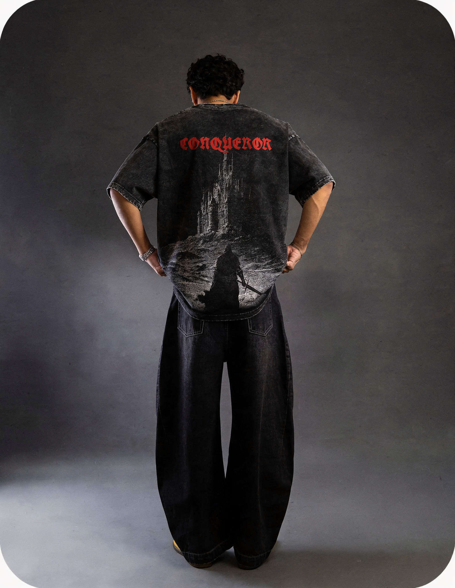 POWER. PRESENCE. PURPOSE. THE CONQUEROR OVERSIZED TEE IS A SYMBOL OF DOMINANCE AND ENDURANCE, CRAFTED FOR THOSE WHO RISE THROUGH THE ASHES AND CLAIM THEIR GROUND. MADE FROM 240 GSM 100% PREMIUM COTTON, THIS HEAVYWEIGHT PIECE DELIVERS A STRUCTURED SILHOUETTE WITH A LIVED-IN ACID-WASH TEXTURE — THE ESSENCE OF MODERN STREET ARMOR.