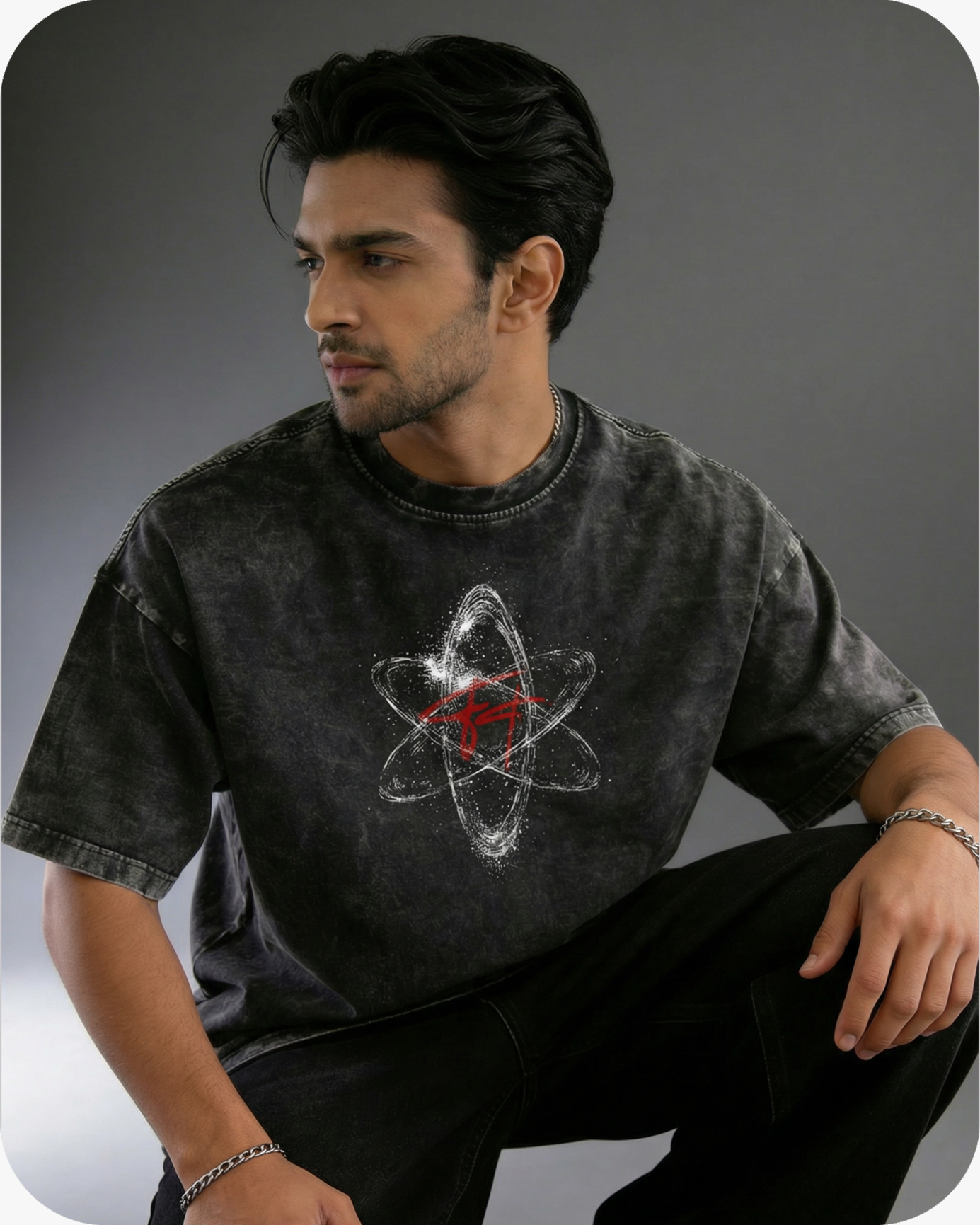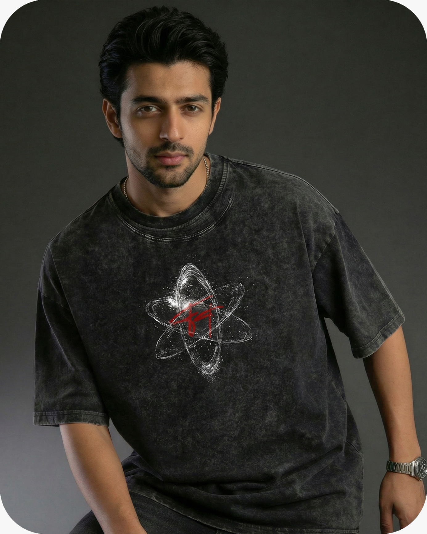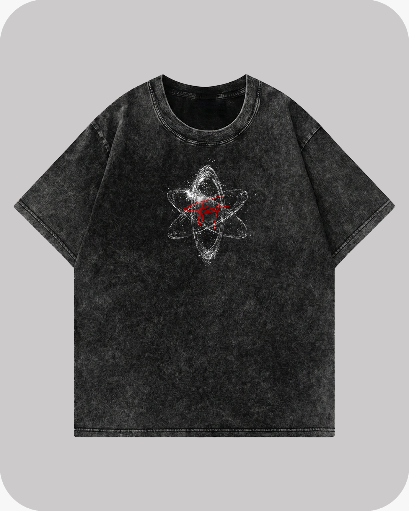 THE FRONT FEATURES AN ATOMIC EMBLEM WITH STRIKING RED ACCENTS, SYMBOLIZING THE ENERGY THAT FUELS INNOVATION. DESIGNED WITH AN OVERSIZED FIT FOR EFFORTLESS DRAPE AND PRESENCE, THIS TEE ISN’T JUST CLOTHING — IT’S A REFLECTION OF THE NEW AGE OF SELF-EXPRESSION.