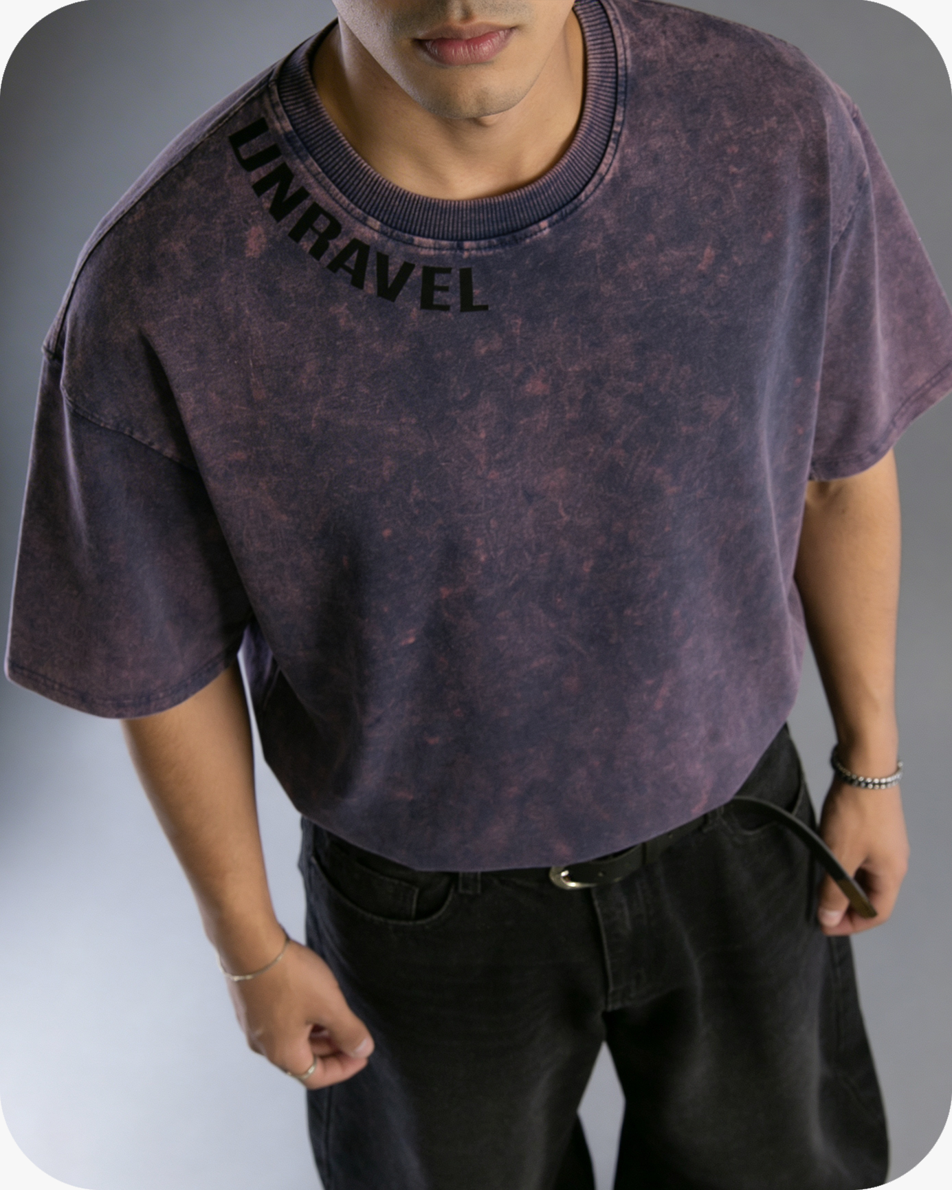 WHERE MINIMALISM MEETS ATTITUDE — THE UNRAVEL CORE TEE IN FADED PURPLE STANDS OUT WITH ITS WASHED, LIVED-IN TEXTURE AND RELAXED OVERSIZED DRAPE. MADE FROM 240 GSM 100% COTTON, IT’S CRAFTED FOR DURABILITY AND COMFORT THAT LASTS. THE ACID-DYED TONES GIVE EACH PIECE A UNIQUE VINTAGE PERSONALITY, COMPLEMENTED BY THE BOLD “UNRAVEL” PRINT ALONG THE NECKLINE — SUBTLE, YET INSTANTLY RECOGNIZABLE.