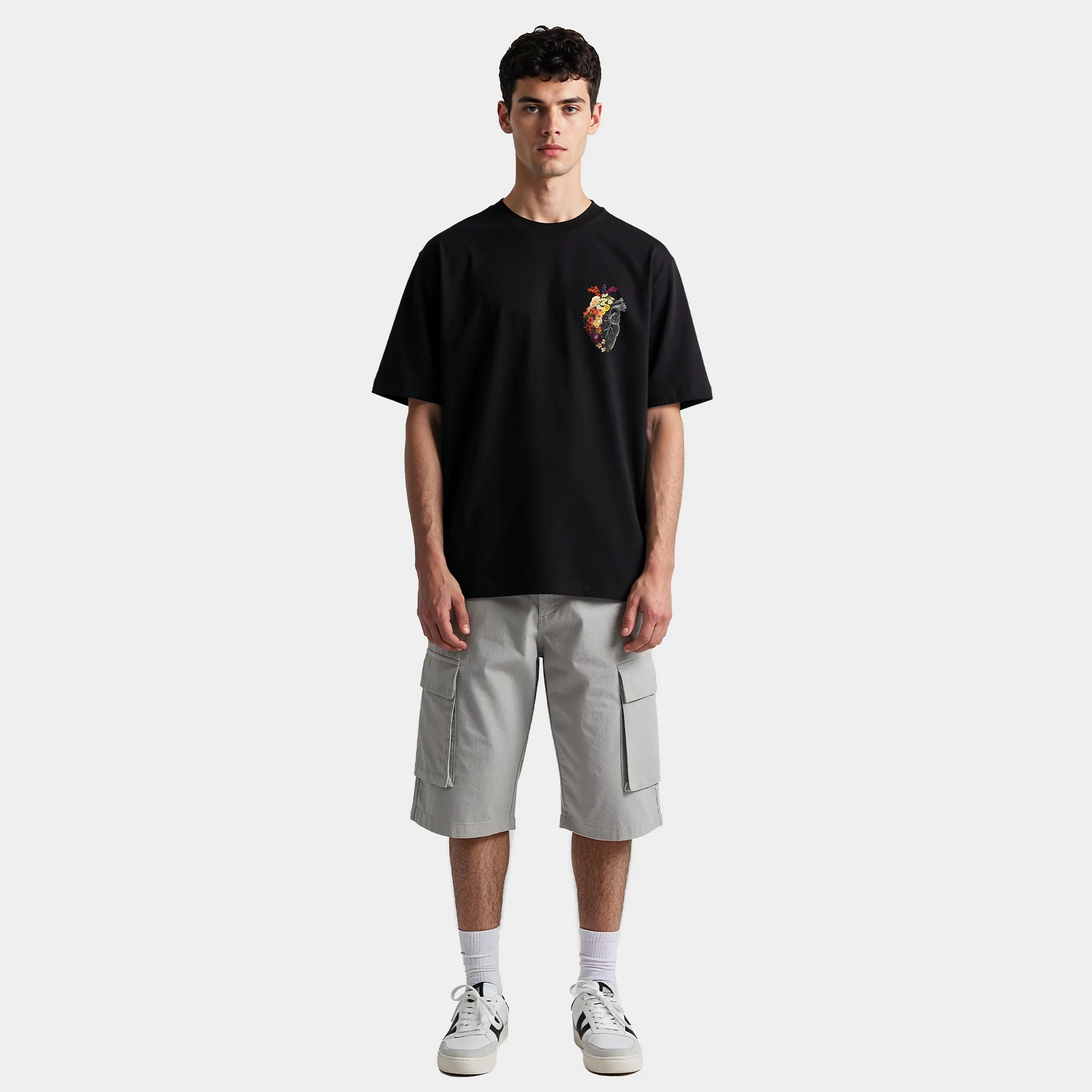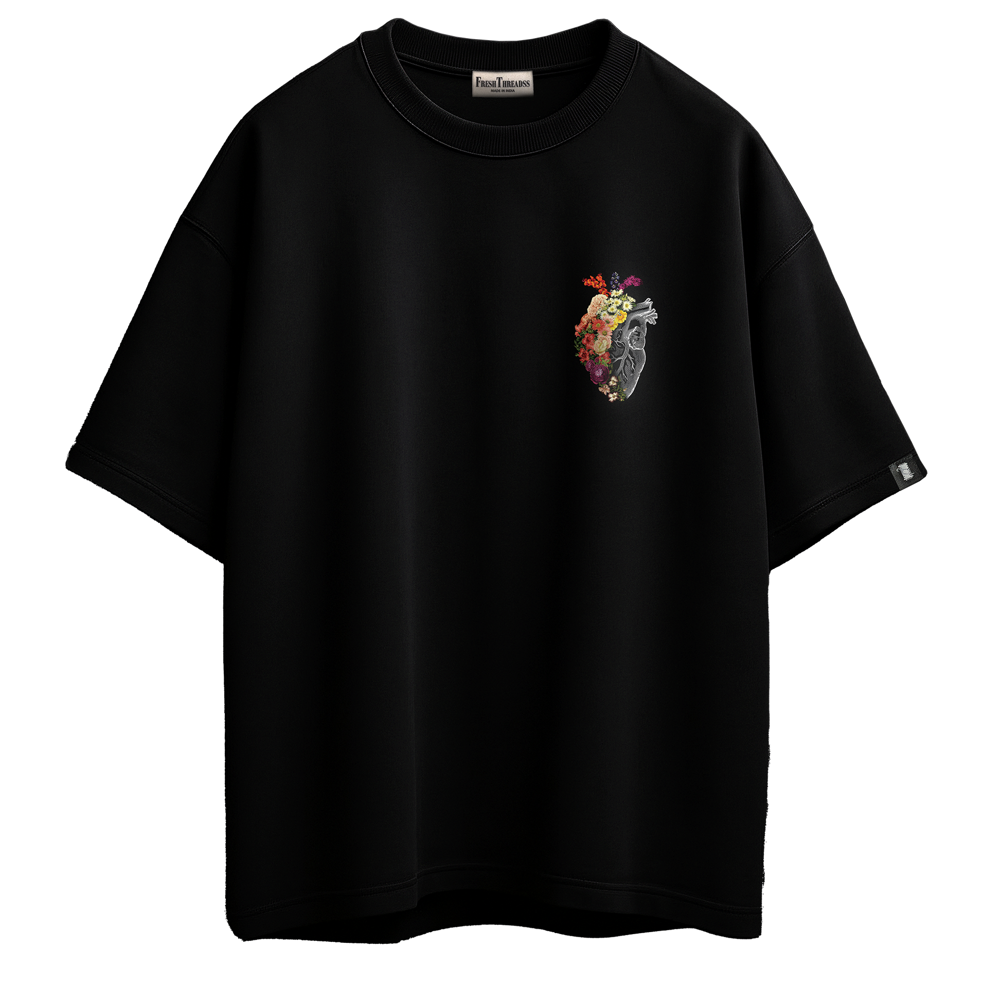 THIS TEE FROM OUR ZERO.1 COLLECTION CELEBRATES RESILIENCE AND QUIET POWER. MADE FROM 100% PREMIUM COTTON WITH A 240 GSM FABRIC, IT OFFERS A SOFT, DURABLE, AND BREATHABLE FEEL — PERFECT FOR ALL-DAY WEAR WHILE KEEPING ITS SHAPE AND STRUCTURE. THE DEEP BLACK COLOR PROVIDES THE PERFECT BACKDROP FOR THE VIBRANT FLORAL AND GRAPHIC ELEMENTS, MAKING THEM POP WITH STRIKING CONTRAST.