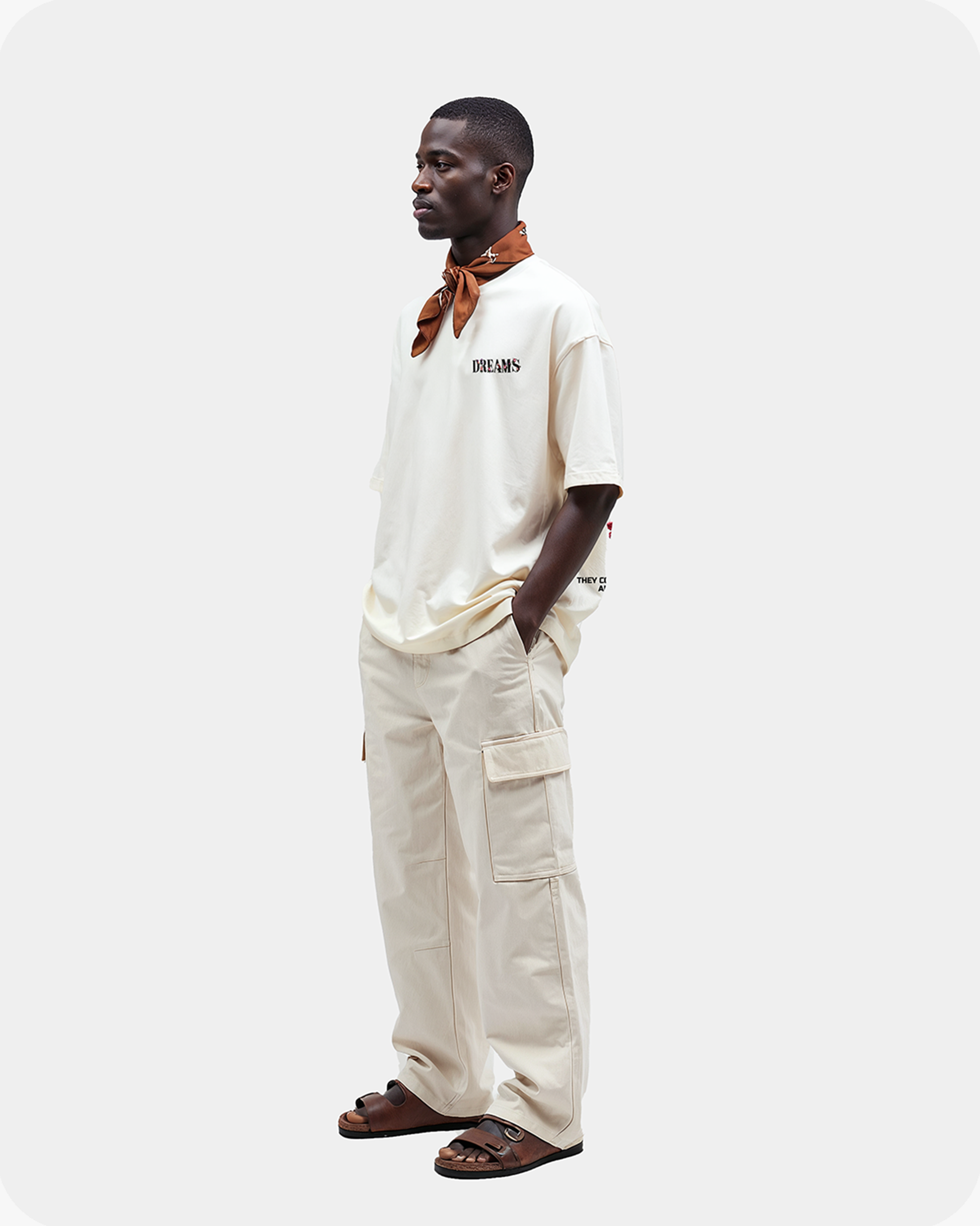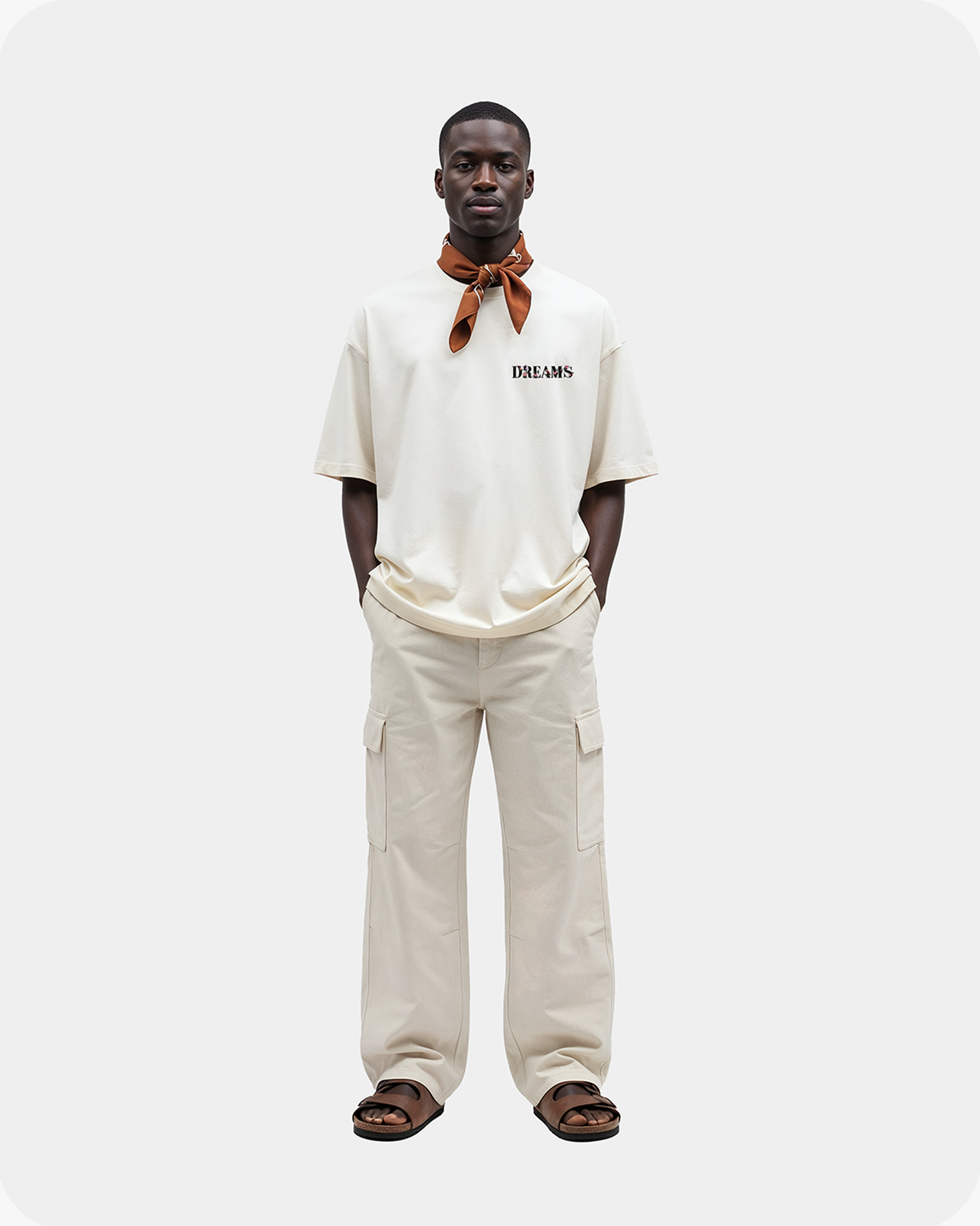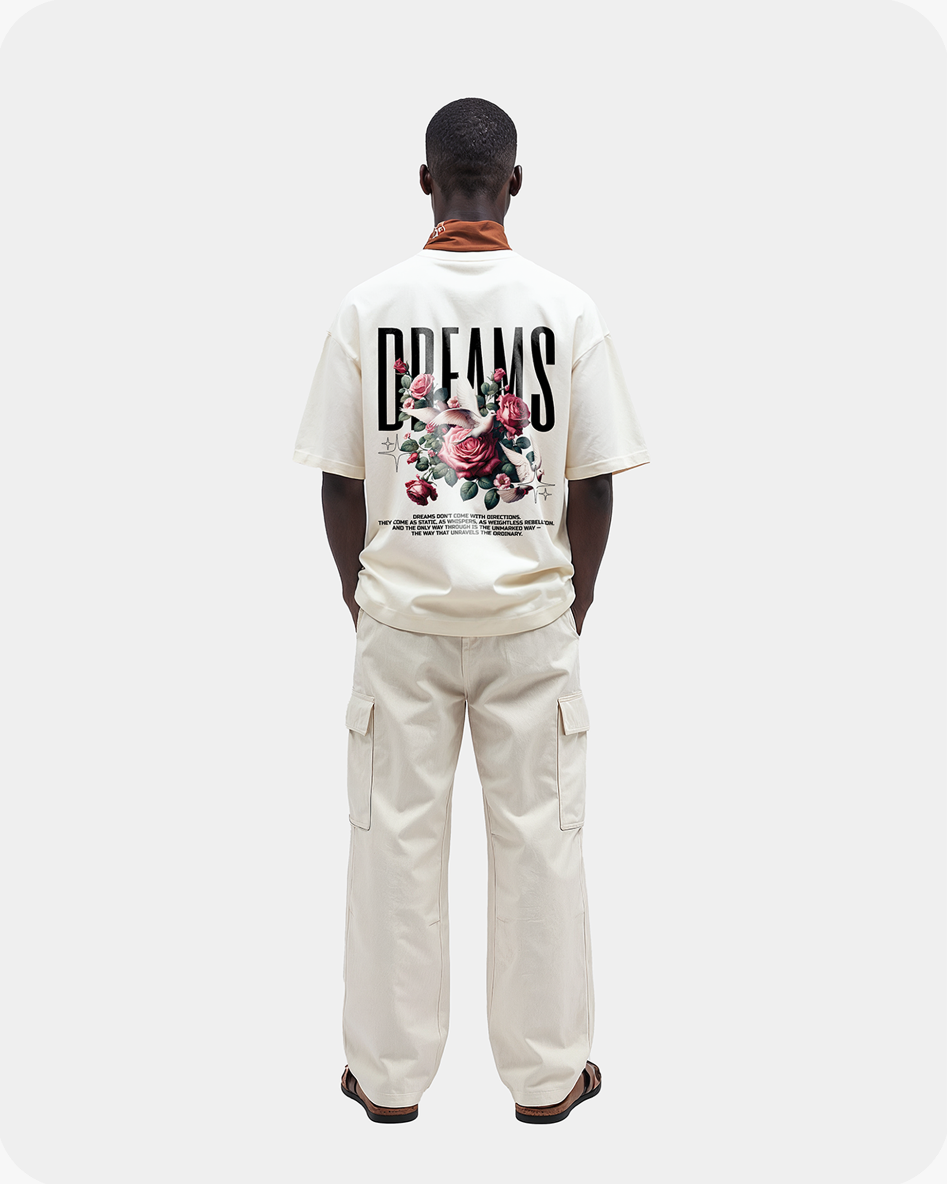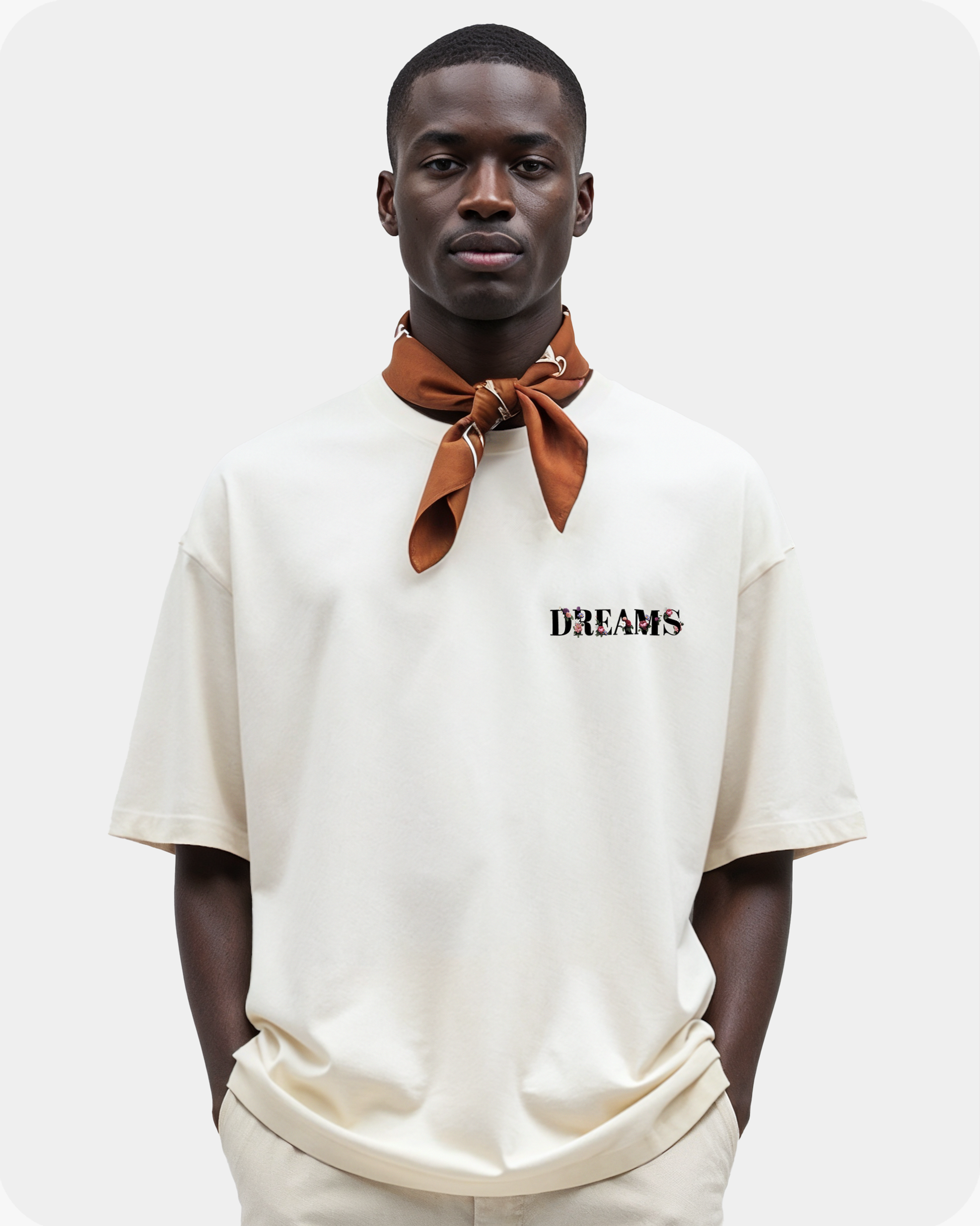 THIS BOLD OVERSIZED OFF-WHITE TEE FROM OUR ZERO.1 COLLECTION CELEBRATES IMAGINATION, HOPE, AND FEARLESS AMBITION.