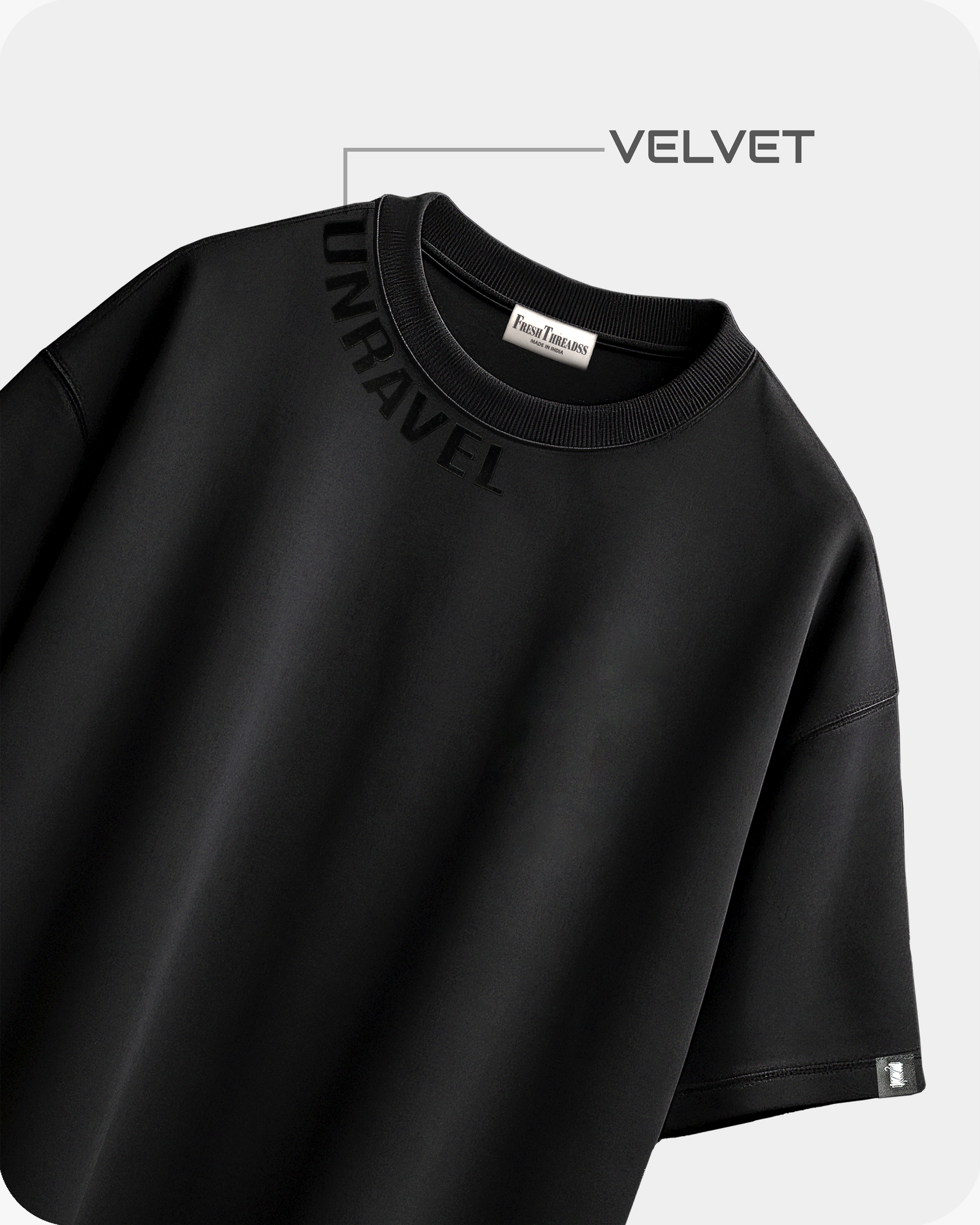 ELEVATE YOUR WARDROBE WITH OUR ORIGINAL'S BLACK OVERSIZED T-SHIRT, CRAFTED FOR THOSE WHO VALUE UNIQUE TEXTURE AND UNBEATABLE COMFORT. INSPIRED BY MINIMAL STREETWEAR AESTHETICS, THIS TEE FEATURES A PREMIUM COTTON FINISH WITH A VELVET PATCH THAT DELIVERS A SUBTLE LUXURY SHEEN AND A SUPER-SOFT TOUCH. THE RELAXED, DROP-SHOULDER SILHOUETTE ENSURES AN EFFORTLESSLY STYLISH FIT, WHILE THE REINFORCED NECKLINE AND QUALITY STITCHING PROMISE LASTING DURABILITY.